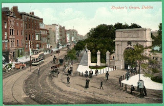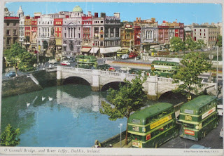 Here's a postcard from the 1960s that depicts a number of scenes including hunting in Co. Meath, The Dublin Horse Show, The Irish Derby then known as the Irish Sweeps Derby, and the Irish Hospitals' Sweepstakes draw. The Sweepstakes were a big deal at one point but by the time this postcard had been created, presumably as a promotional tool its glory days were over. The Sweepstakes were somewhat unique at one point as many countries had prohibitions on lotteries so there was a thriving blackmarket in tickets in America, Canada, and Britain. How many tickets sold abroad ever made it into the draw is anybody's guess.Here's the GPO on Dublin's O'Connell Street in 1968. Notice the absence of Admiral Nelson and his pillar.